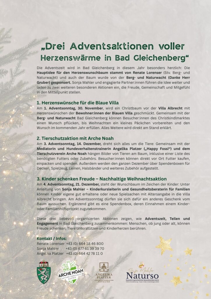 Gemeinsam mit engagierten Partner:innen gestalten wir in Bad Gleichenberg drei besondere Adventsaktionen voller Herzenswärme.